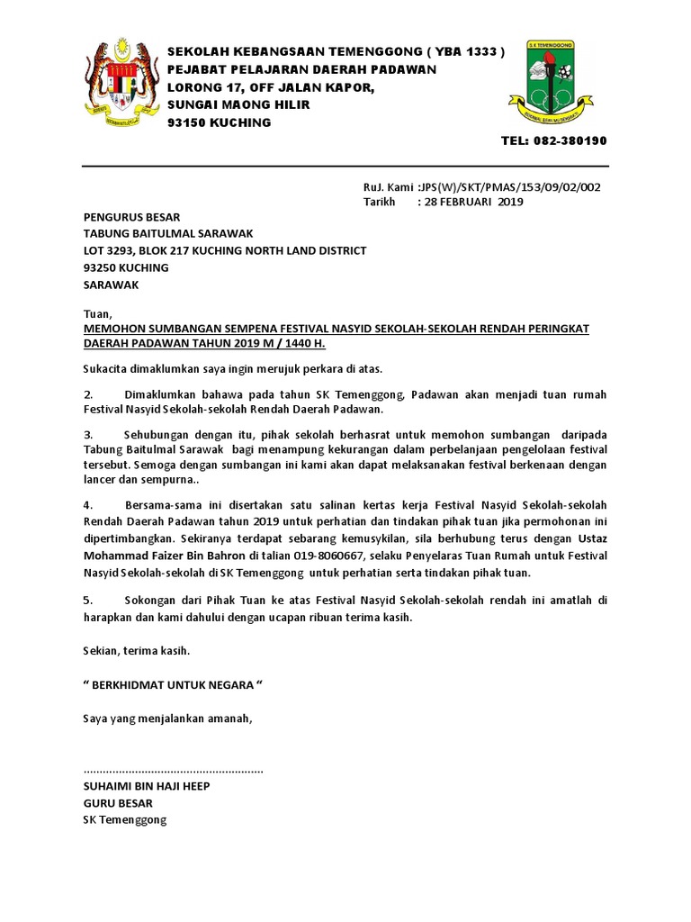 Surat Rasmi Permohonan Bantuan Kewangan Baitul Mal Otosection